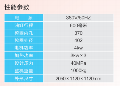 1、靜態壓榨法,采用液壓傳動系統,壓力均勻且穩定,能充分擠壓油料中的油脂;